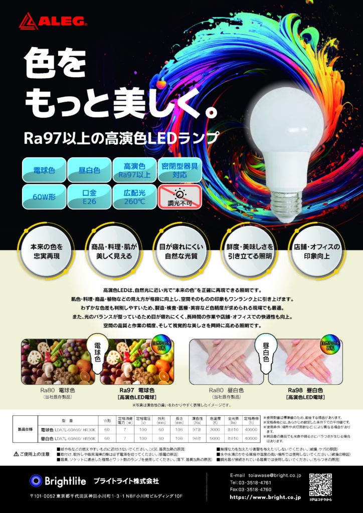 電球色(3000K)はRa97、昼白色(5000K)はRa98。