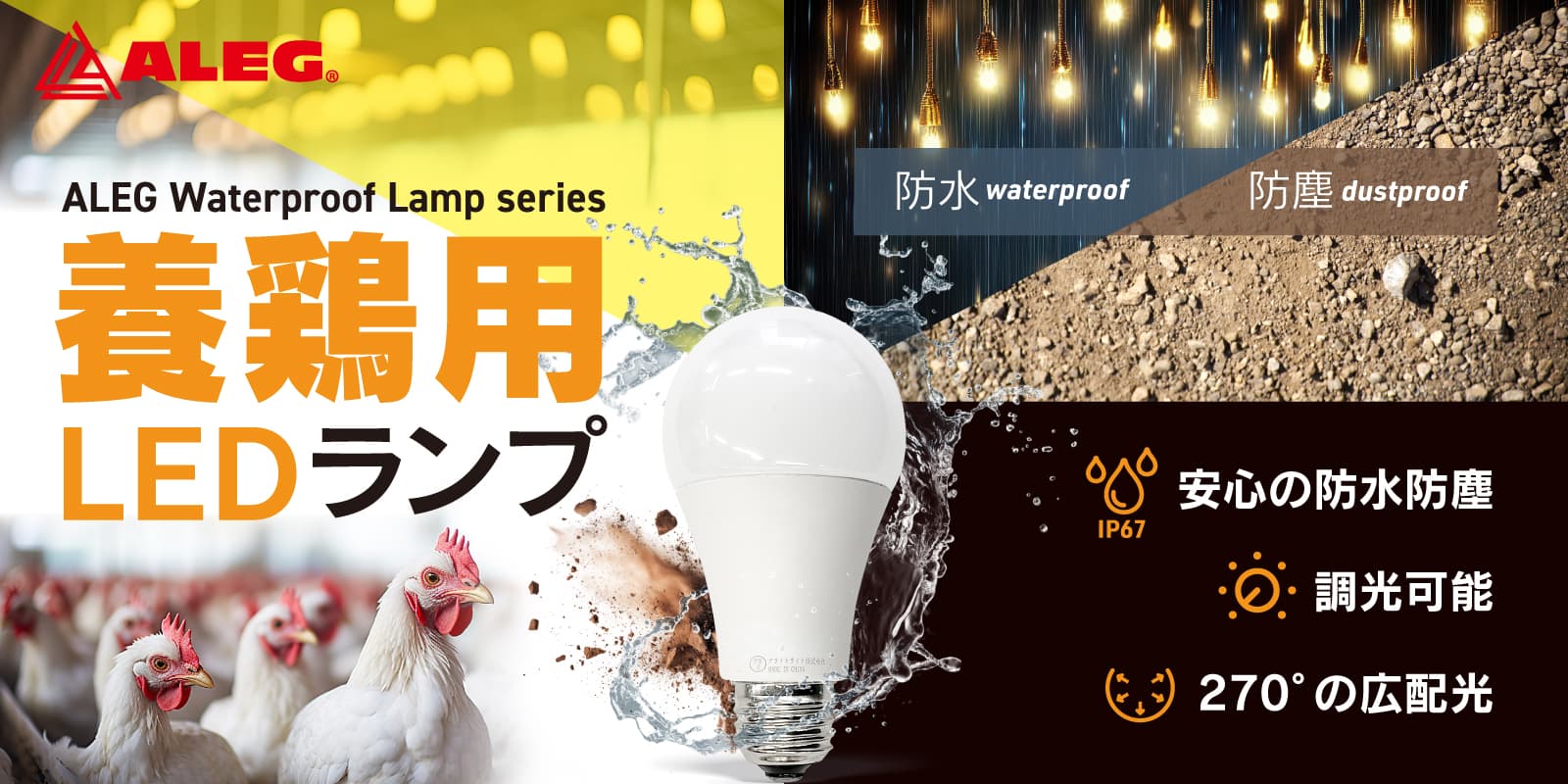 光を絞ってもちらつきが起こらないため、鶏への余計なストレスも軽減できます。